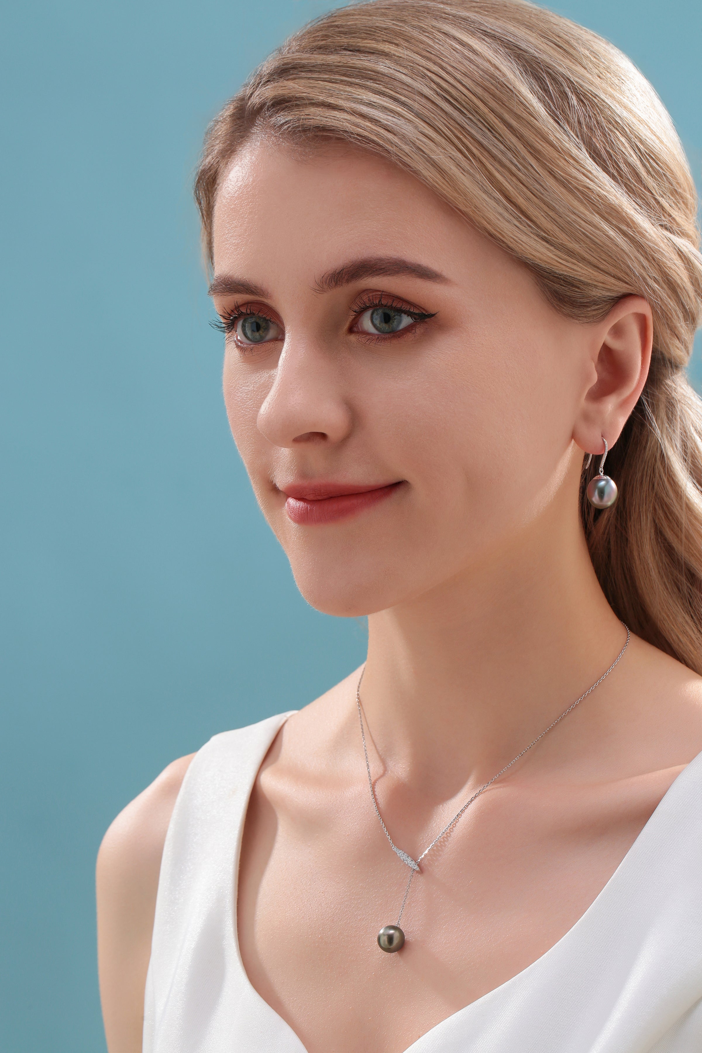 11-12 mm Tahitian Drop Pearl Earrings -18K White Gold