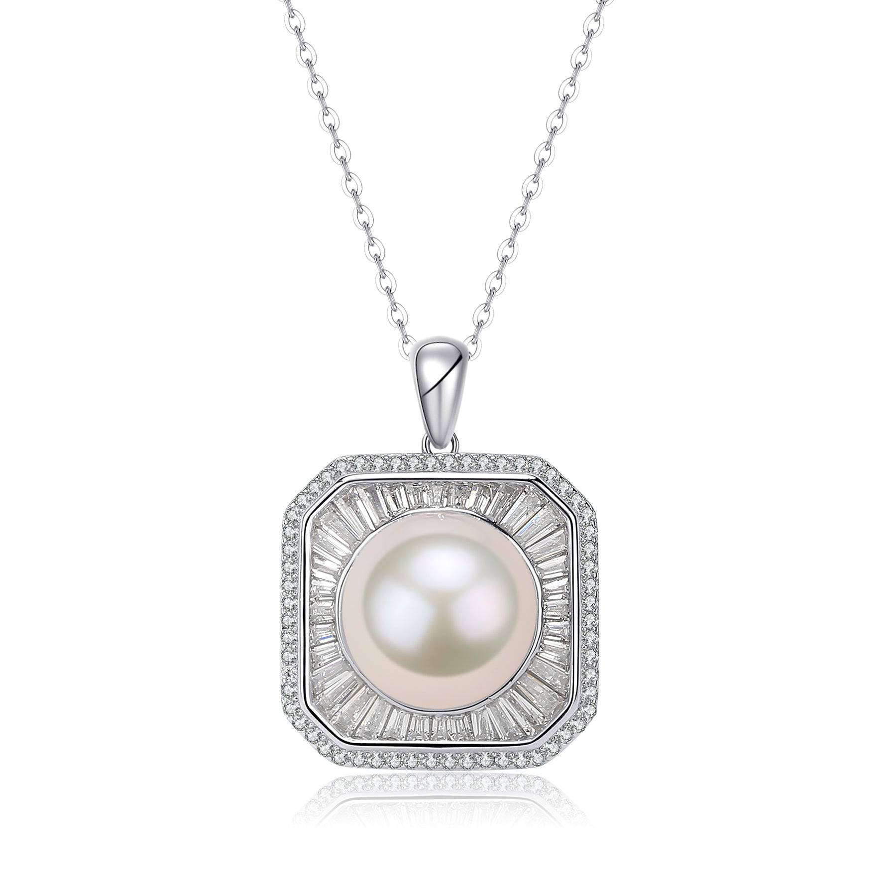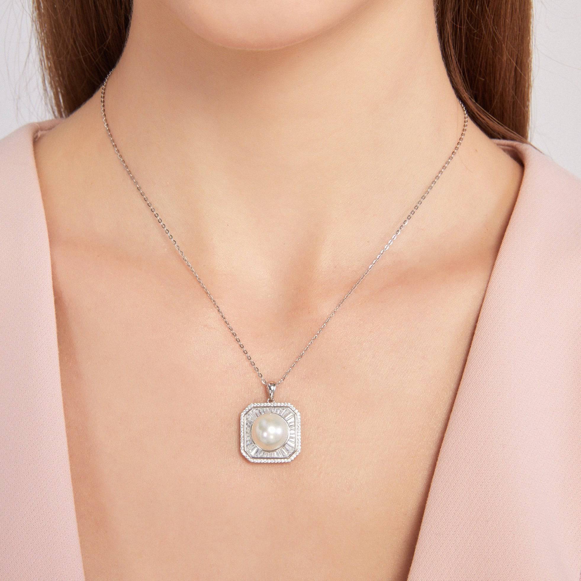 Add a classic, timeless beauty to your bridal jewelry collection with this 11-12mm Freshwater Pearl & Square Cubic Zirconia Pendant Necklace. This exclusive pearl pendant necklace is set in sterling silver and features an 11-12mm freshwater pearl perfectly complemented by a square cubic zirconia detailing. Let this exquisite pendant necklace take your outfit to the next level — perfect for a special occasion or bridal jewelry.