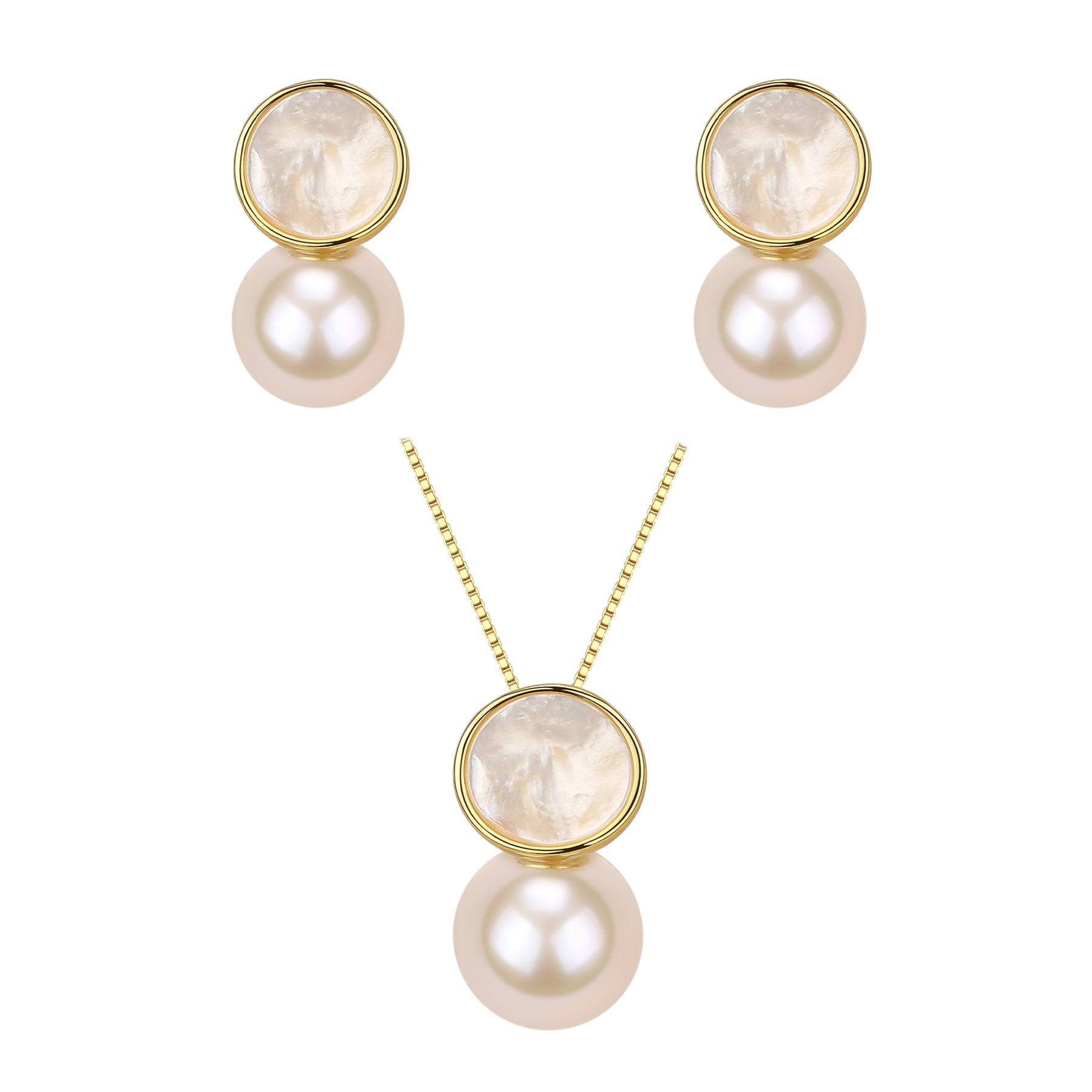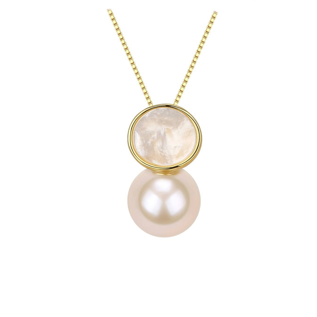 Delight in the subtle elegance of our Mother of Pearl Jewelry Set, featuring exquisite coin-shaped mother of pearl accents paired with luminous 8-9mm freshwater pearls. This refined set includes earrings and a pendant, each showcasing a mother of pearl top that seamlessly transitions into a gleaming freshwater pearl drop. The compact and delicate design of each piece makes this set a testament to understated luxury.