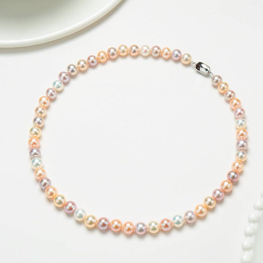 This multicolor pearl necklace is not only a beautiful accessory but also a versatile piece that complements any outfit, providing a luxurious pop of color with the timeless charm of pearls.