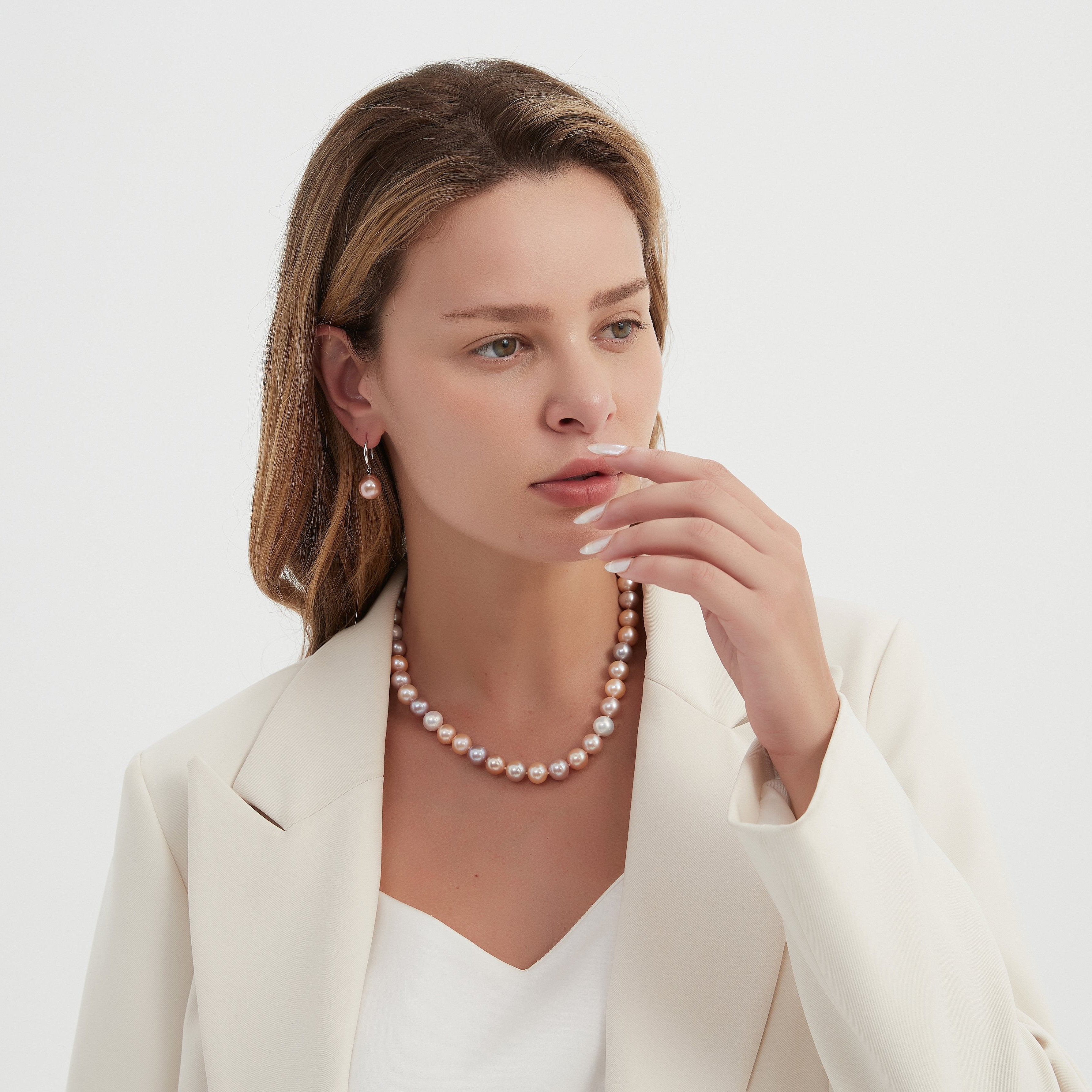 Adorn yourself with the vibrant elegance of our High-Quality Multicolor Freshwater Pearl Necklace. This exquisite piece alternates between white, pink, and purple pearls, each displaying a brilliant luster and round shape. The pearls are sized 8-9mm, carefully selected for their flawless quality and smoothness. Measuring 45cm (18 inches) in length, this necklace is finished with fine silver accessories, making it a perfect choice for anyone looking to add a touch of color and sophistication to their wardrobe."