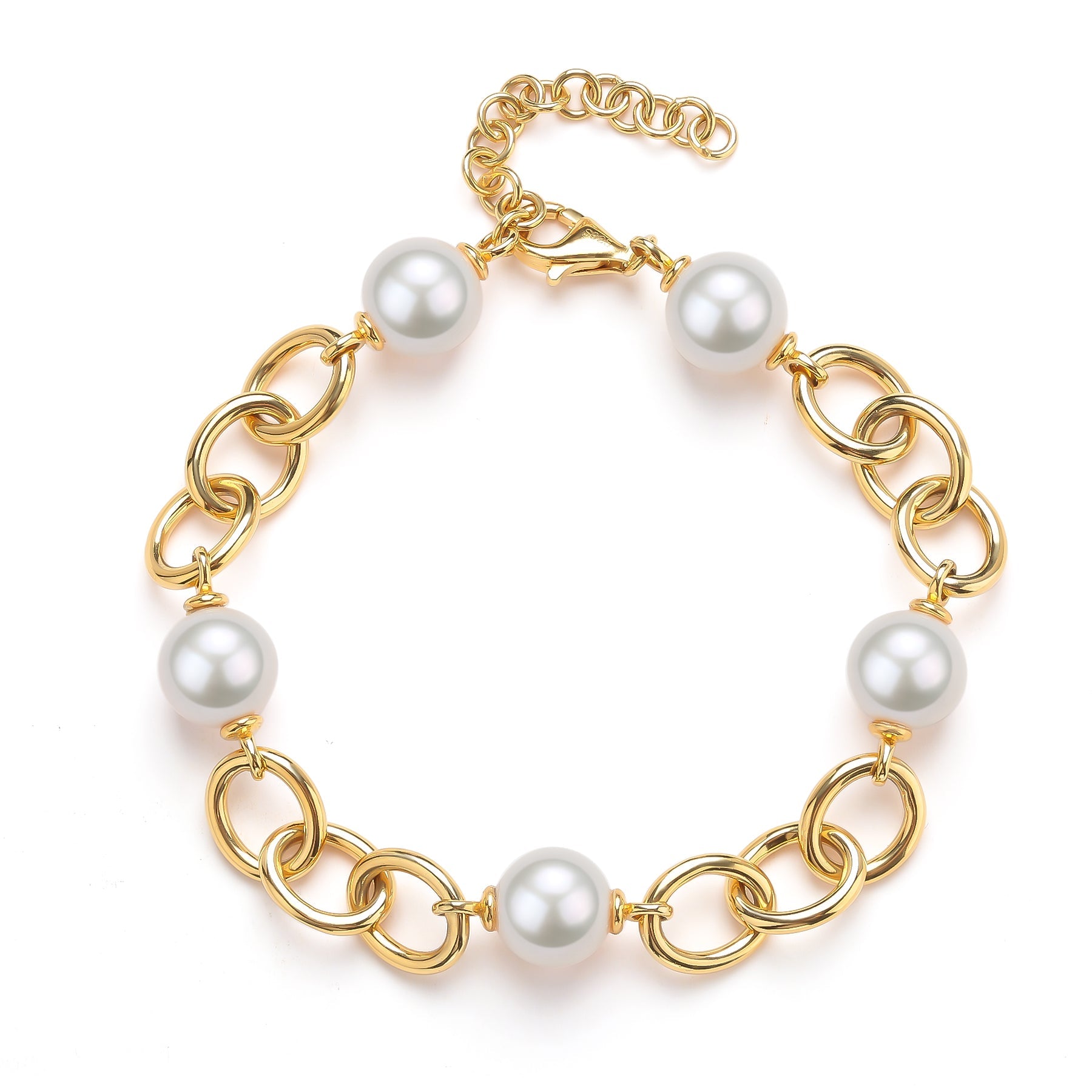 9-10mm Freshwater Pearl Chunky Silver Chain Bracelet