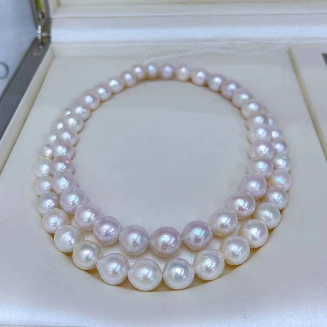 Discover the timeless elegance of our White Freshwater Baroque Pearl Necklace. Featuring 9.0-12.0mm baroque-shaped pearls, graded AAA for their brilliant luster and seamless beauty. Hand-strung and knotted for durability, with a sterling silver clasp for an added touch of sophistication. An heirloom-worthy piece for any collection.