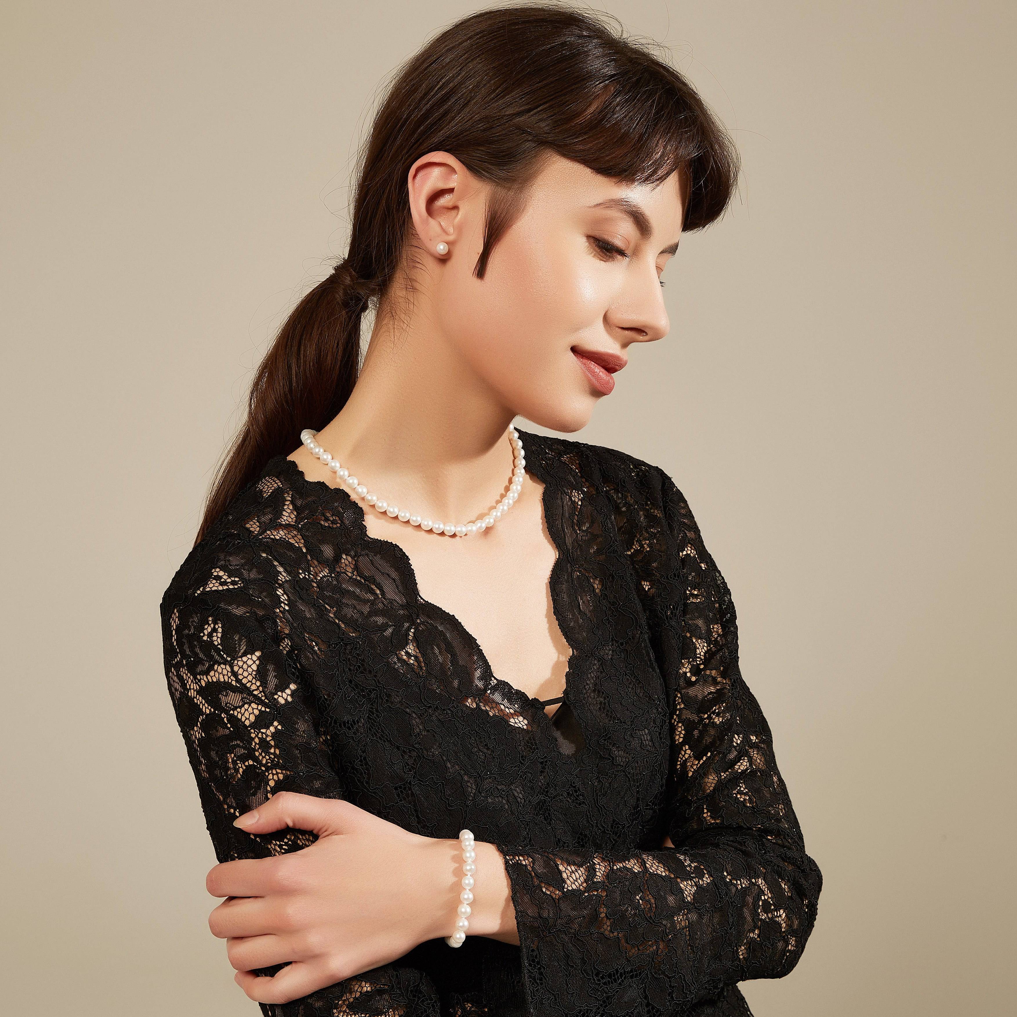 Treat yourself to a gorgeous single-strand freshwater pearl necklace. Set the bar high for glamour with this heirloom-worthy pearl 7.5-8.0mm strand featuring a row of AAA or AAAA graded round white freshwater pearls that are blemish-free, with no visible size or color differentiation. These pearls have a highly reflective luster, beautifully complementing the pearl beside it seamlessly.